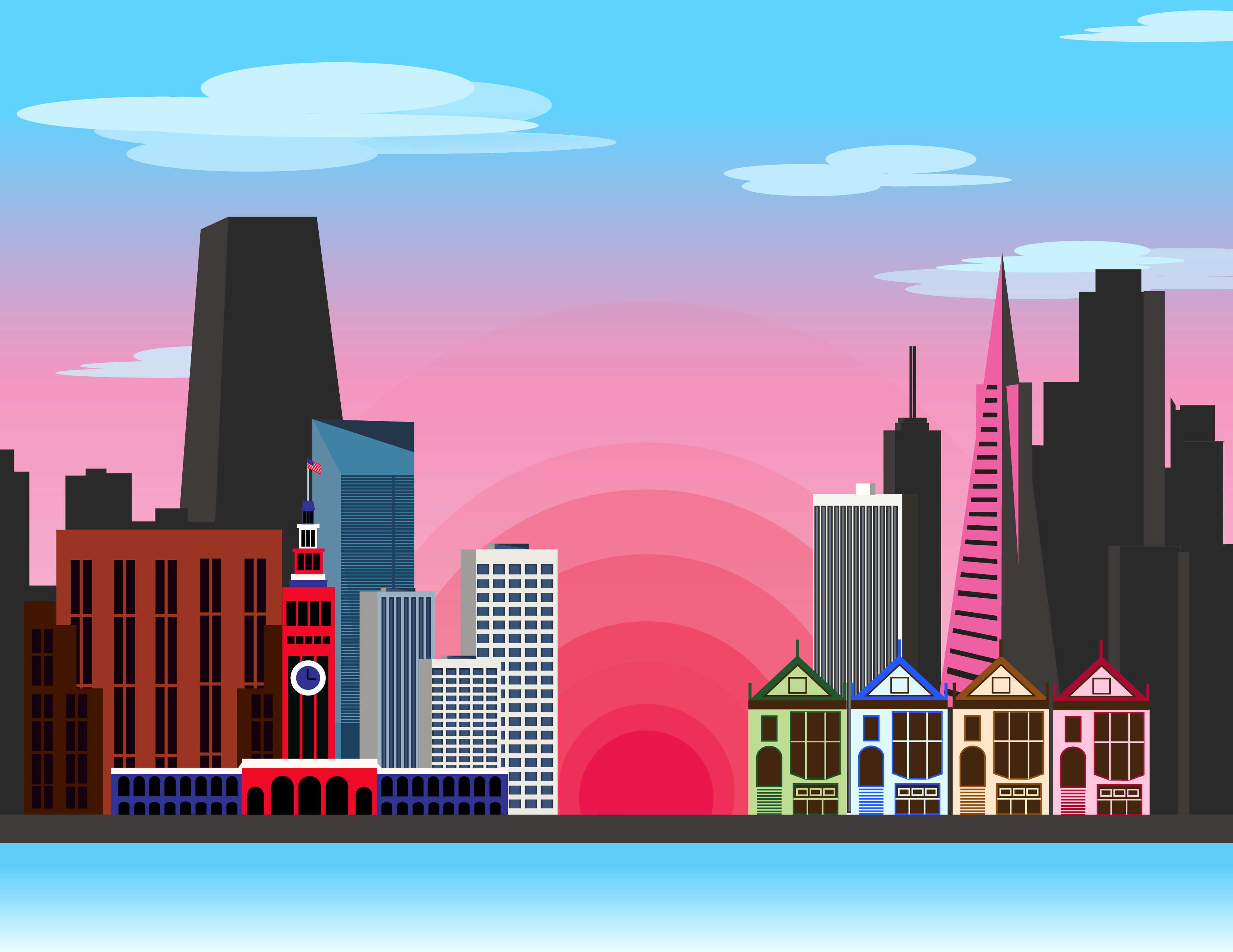 This is San Fransico Skyline project. It expresses San Francisco's landmark ferry building, painted lady, and trans America.